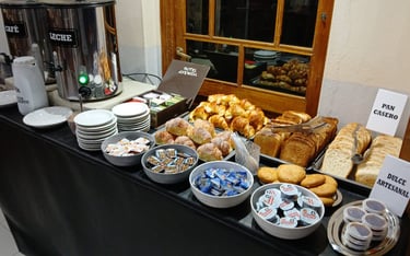 Espacio equipado para reuniones junto a servicio de catering profesional.