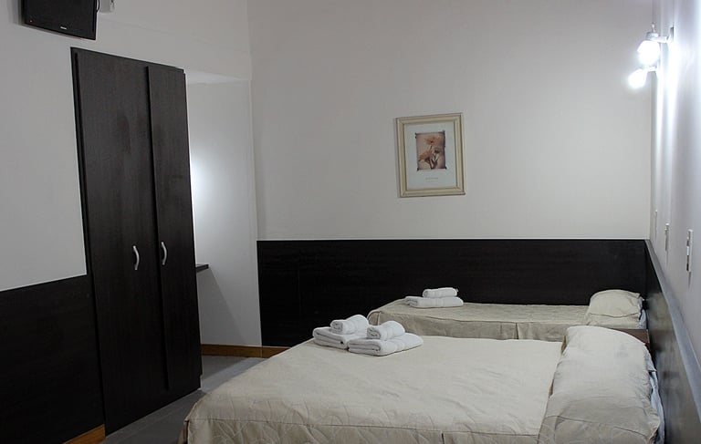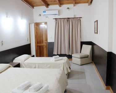 Habitación standard simple para 1 persona, adaptables según se lo requiera, con la posibilidad de alojar de 1 a hasta 3 personas en una cama matrimonial o dos camas individuales.