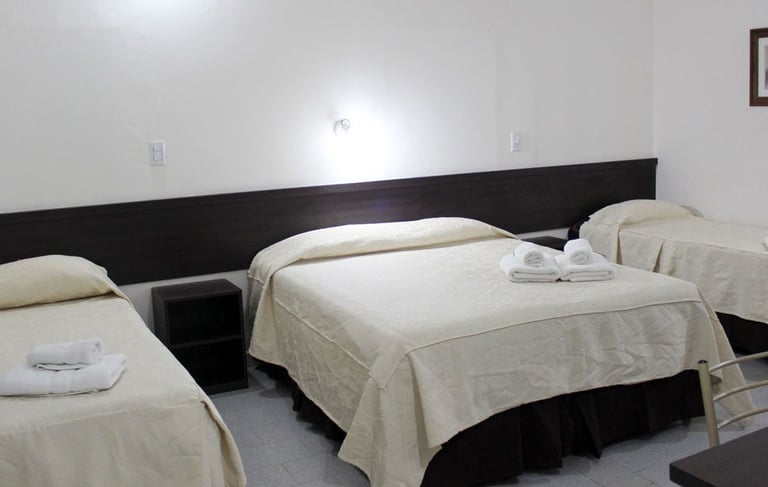 Habitación standard triple para 3 personas, adaptables según se lo requiera, con la posibilidad de alojar de 2 a hasta 4 personas en una cama matrimonial o dos camas individuales.